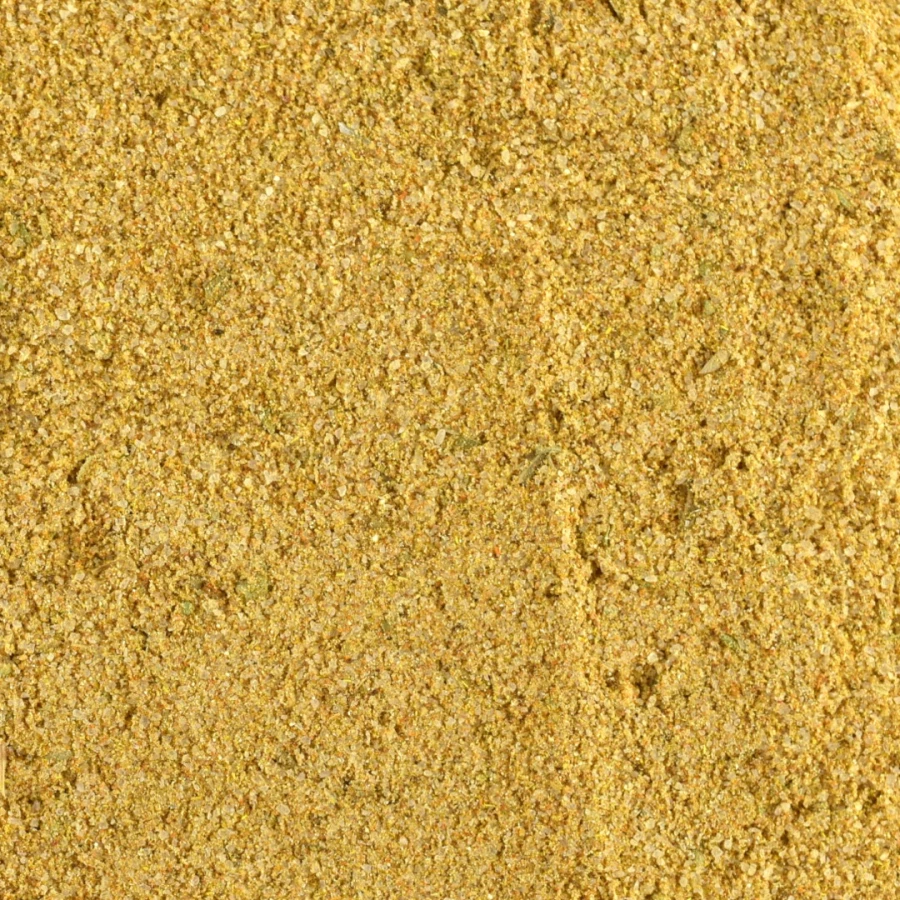 sól, cukier, papryka słodka, kolendra, curry: kolendra, kurkuma, kozieradka, gorczyca, goździki, koper włoski, imbir, czosnek, cynamon, pieprz czarny, suche mango, kukurydza; skrobia pszenna, cebula, oregano, czosnek, papryka ostra, kurkuma.