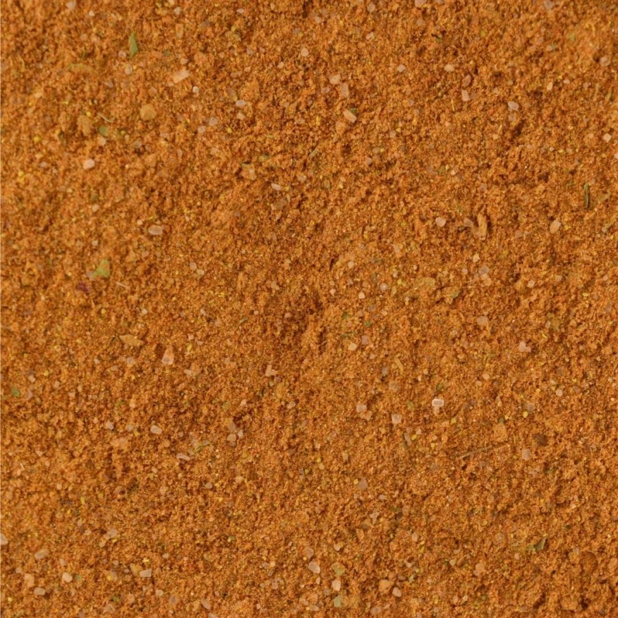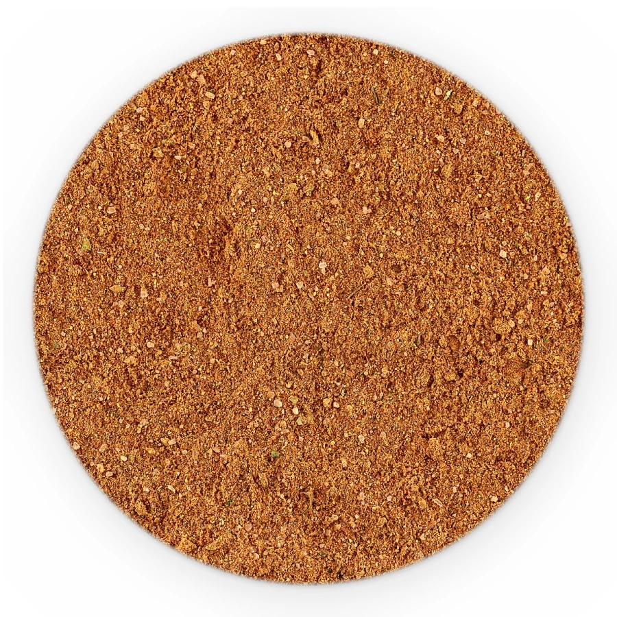 sól, papryka słodka, kozieradka, czosnek, kurkuma, skrobia pszenna, skoncentrowany sok z buraka (60% maltodekstryna, 40% skoncentrowany sok z buraka); cebula, imbir, chilli, curry ((kolendra, kurkuma, kozieradka, gorczyca, goździki, koper włoski, imbir, czosnek, cynamon, pieprz czarny, suche mango, kukurydza); nać pietruszki, majeranek, ziele angielskie, kolendra.
