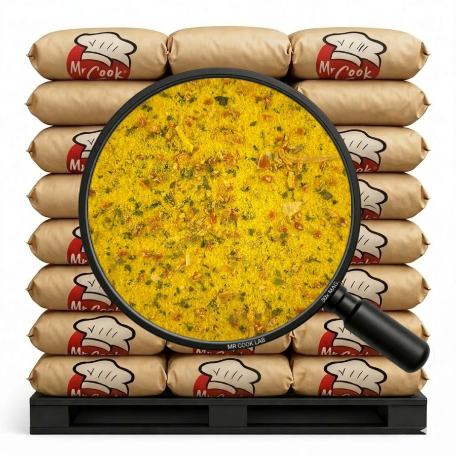 sól, skrobia pszenna, suszone warzywa (6,2%): (marchew, cebula, pietruszka nać, pasternak), cukier, olej rzepakowy, barwnik: ryboflawina.