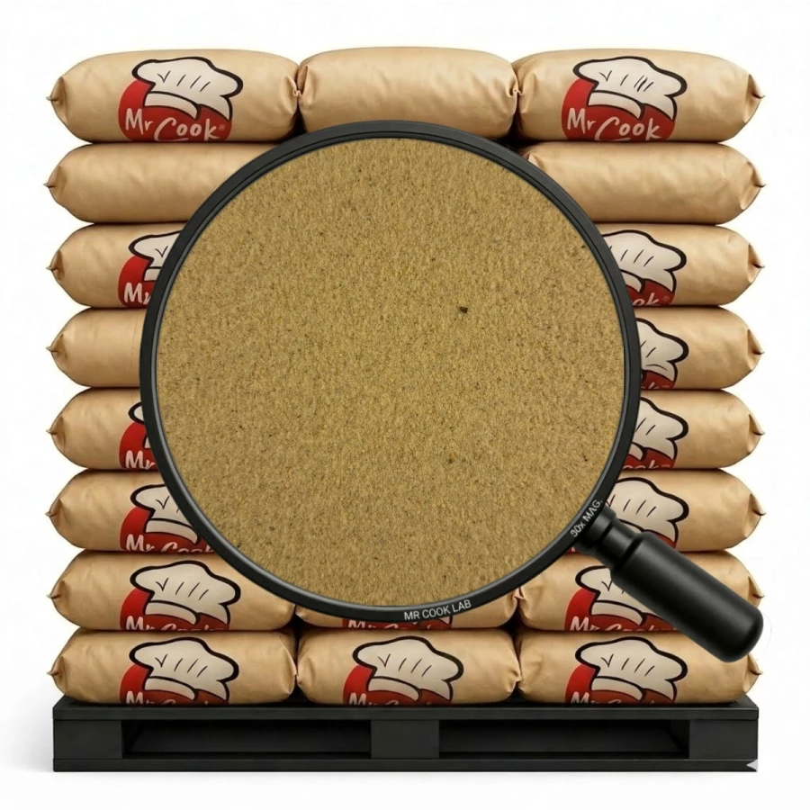 mąka pszenna, sól, cukier, skrobia pszenna, pieprz ziołowy (gorczyca, kminek, majeranek, cząber, pietruszka, koper, kolendra, tymianek, estragon, por); regulator kwasowości: kwas cytrynowy.